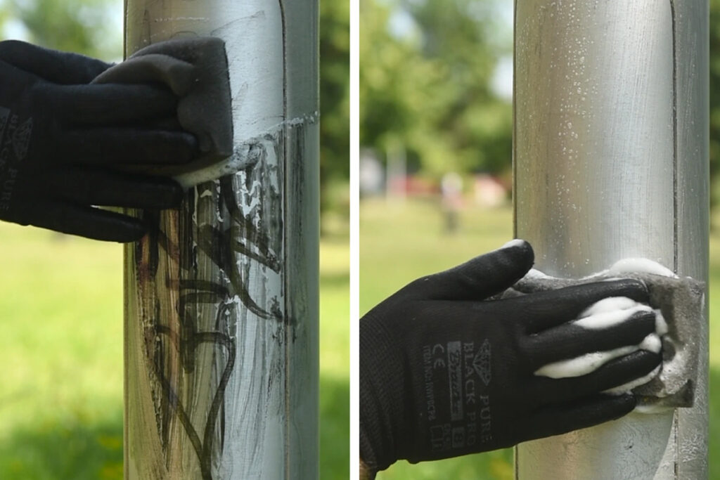 Anodizácia výrazne zjednodušuje udržiavanie čistoty hliníkových stĺpov. Anodický povlak vytvára povrch, ktorý je oveľa menej náchylný na zafarbenie ako čistý kov. Celistvosť povlaku, integrálne spojeného so základným kovom, chráni stĺp pred trvalým zafarbením. Usadeniny nahromadené na povrchu sa dajú ľahko odstrániť bežne dostupnými čistiacimi prostriedkami. Mydlová voda účinne odstraňuje väčšinu nečistôt a aj odolnejšie škvrny, ako napríklad nápisy vytvorené fixkou.