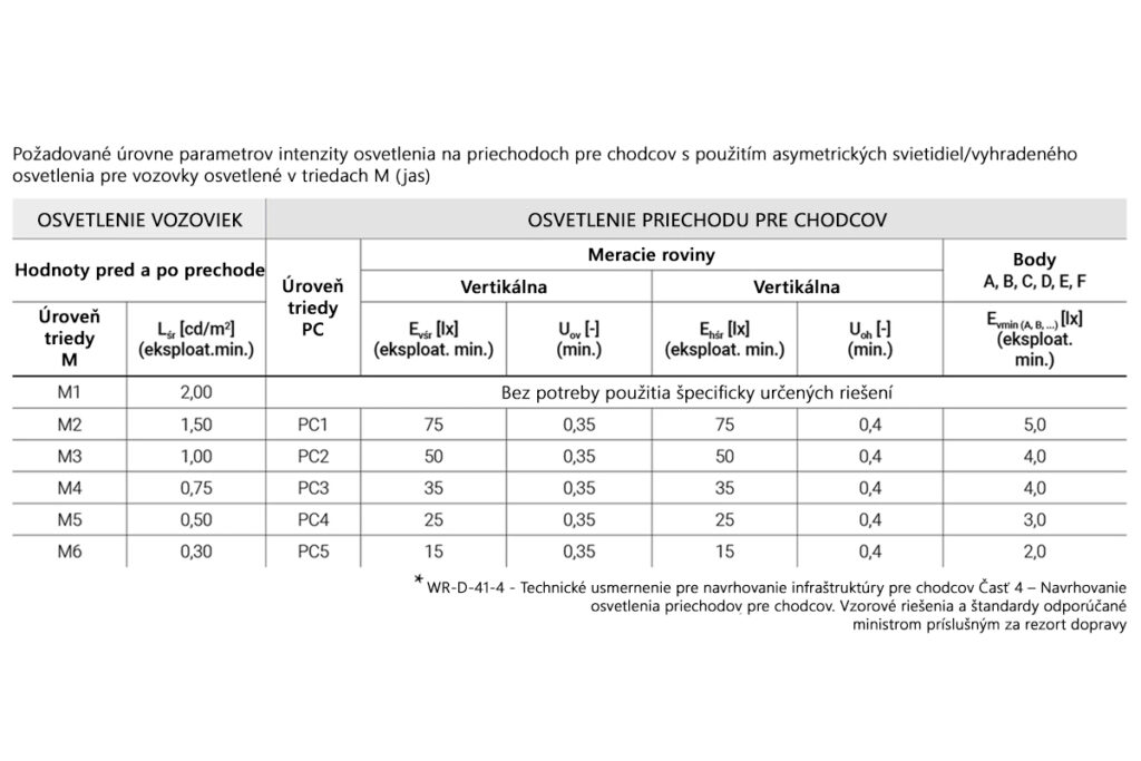 Nadácia pre rozvoj stavebného inžinierstva, Technická univerzita v Gdansku, Varšavská technická univerzita a Výskumný ústav ciest a mostov vypracovali smernice WR-D-41-4* pre osvetlenie priechodov pre chodcov, ktoré majú zlepšiť bezpečnosť chodcov. Tieto smernice okrem iného zavádzajú novú triedu osvetlenia PC.