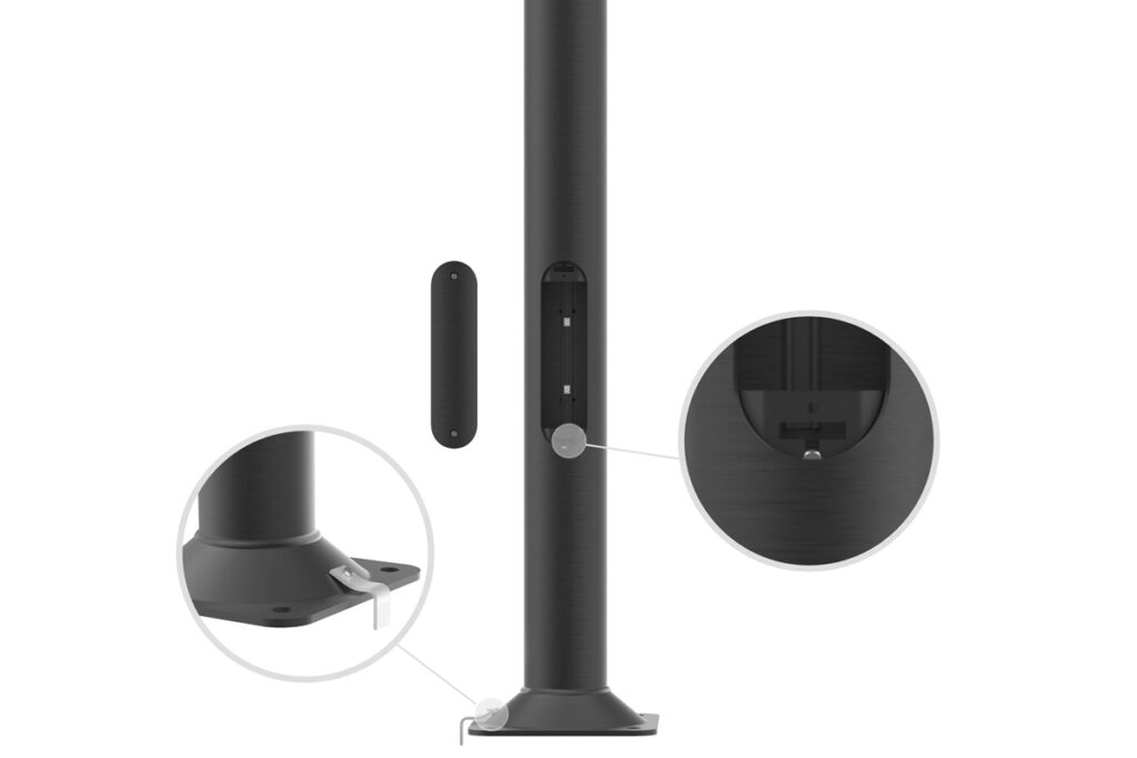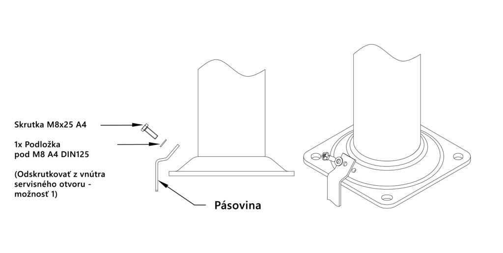 To zahŕňa pripevnenie pásika k základni stĺpa pomocou skrutky M8 vybranej z výklenku stĺpa (možnosť 1)